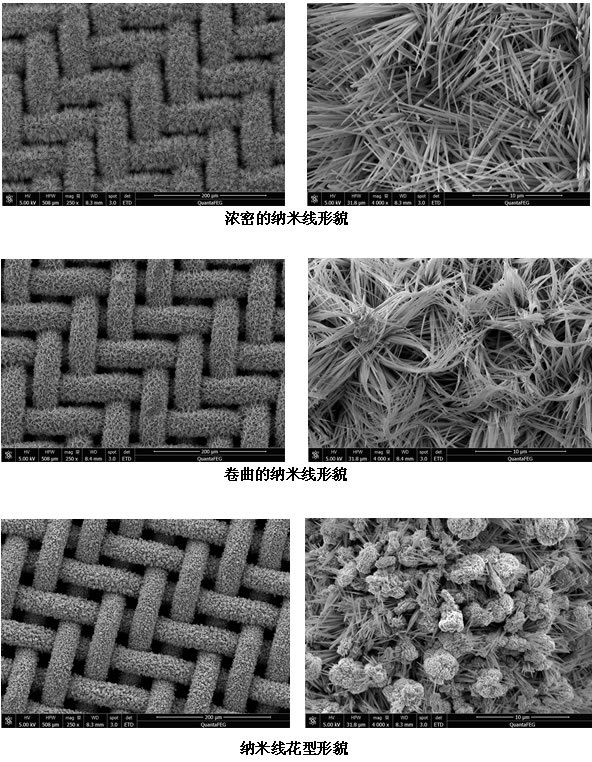 具有超親水/水下超疏油特性網(wǎng)膜的不同形貌電鏡圖